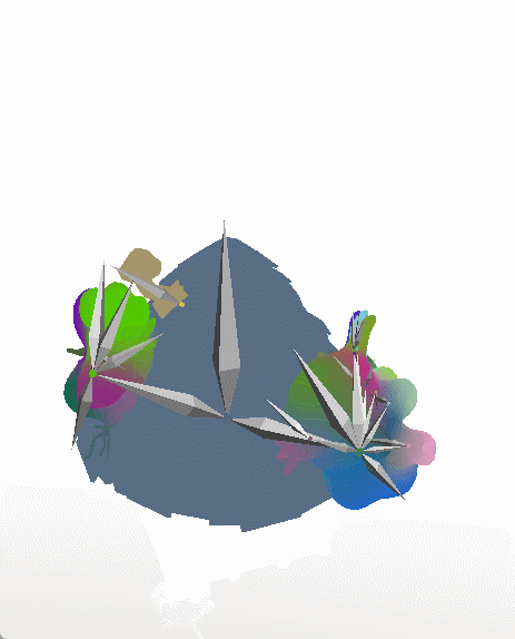 The walls animate by simple movement of the 3D objects, but the roof had a basic rig to animate the organic blobs.